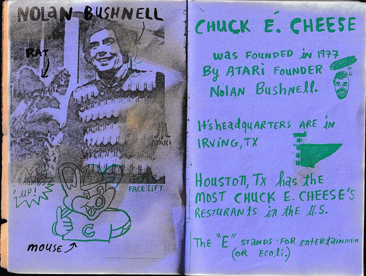 A zine can be about anything you want it to be about. In this case, your love for Chuck E Cheese.